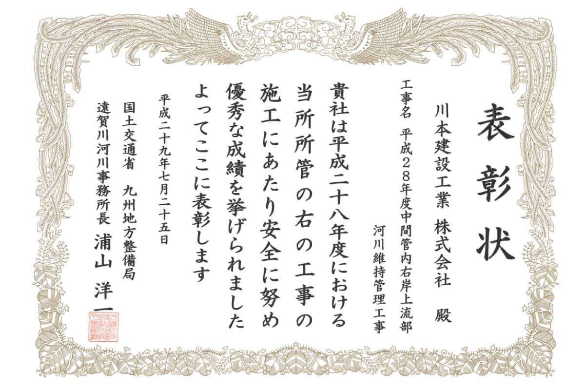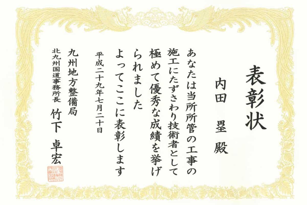 2017年07月20日 優秀現場代理人 事務所長表彰 九州地方整備局 北九州国道事務所